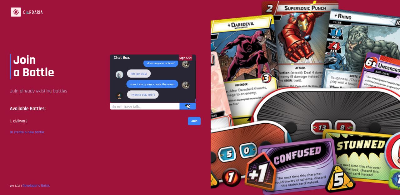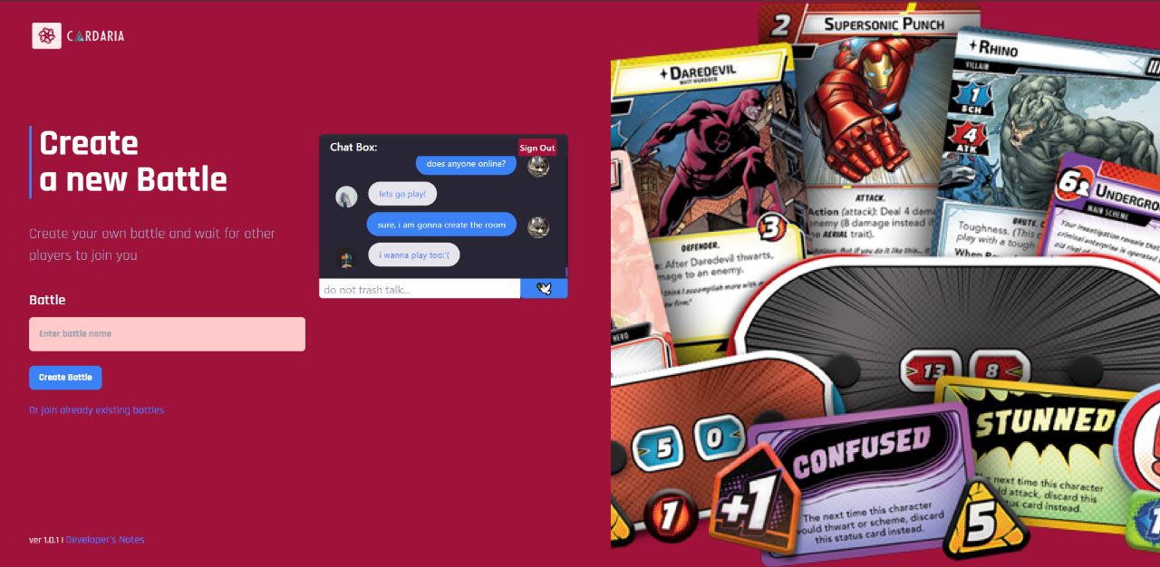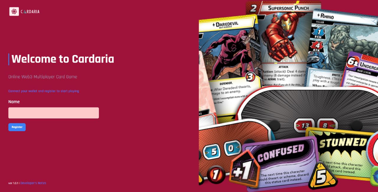 Cardaria is an online multiplayer game I've created that brings Marvel card battles to life using modern web technologies. The game utilizes React for the front end and Web3 for blockchain interactions, allowing players to register, join games, and engage in real-time card battles. It's built to offer a dynamic and interactive gaming experience, supported by a robust server-side infrastructure to manage game states and user interactions effectively.